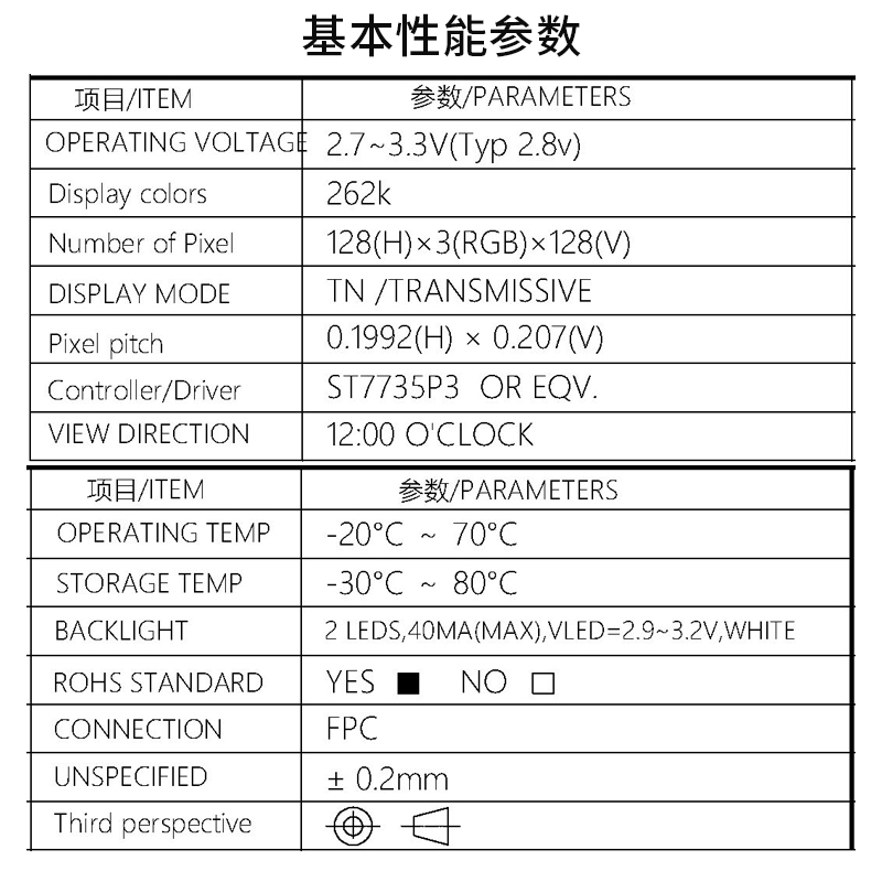 • 1.44寸TFT液晶顯示屏LCD彩屏128*128分辨率