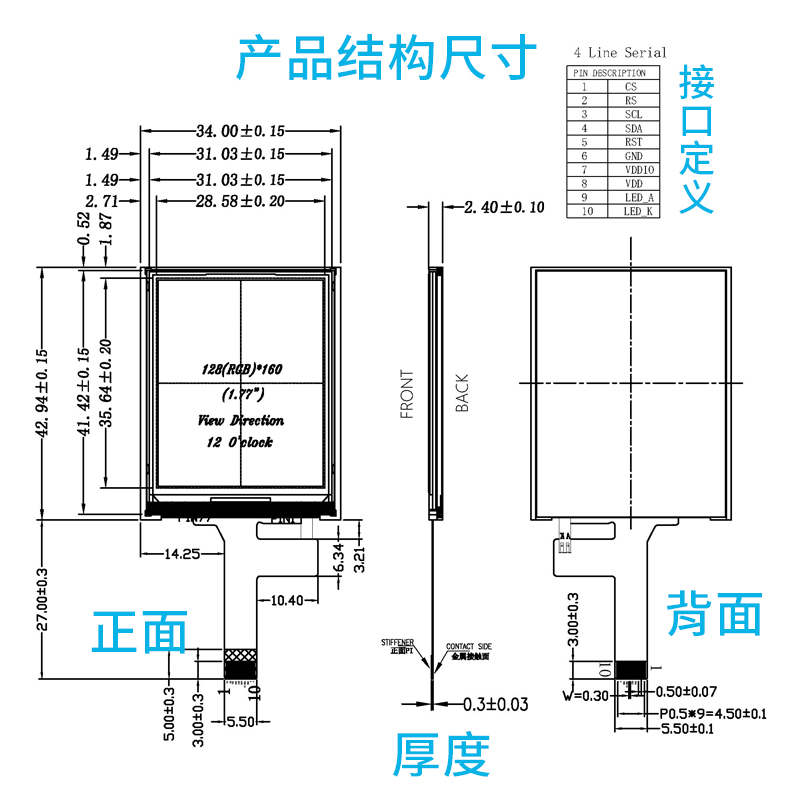 1.77寸LCD彩屏液晶屏128*160全彩顯示