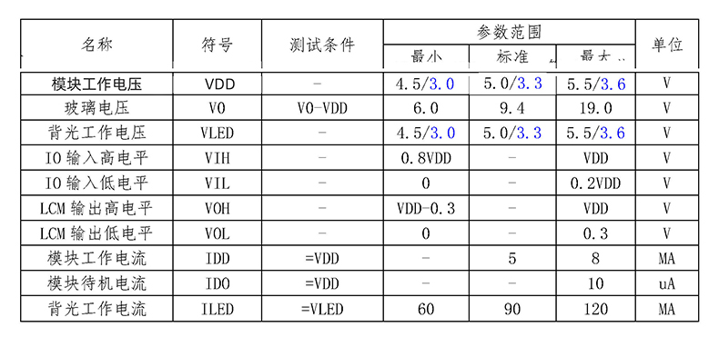 光標、字特正向、負向、閃爍功能模塊整體參數(shù)