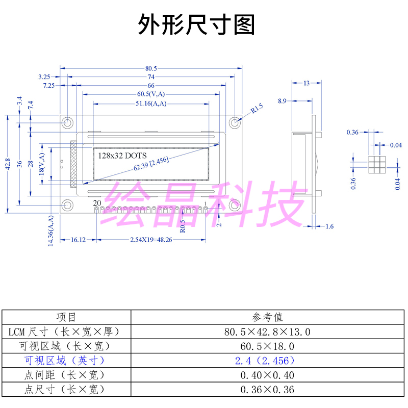 64x128bit的繪圖RAMGDRAM2M bit的中文字庫(kù)ROM(CGROM),總共有8192個(gè)中文字型16Kbit的半寬字型ROT(HOGROM),總共有126個(gè)字母符號(hào)字形64x16 bit的自定義字符RAM(CGRAM)