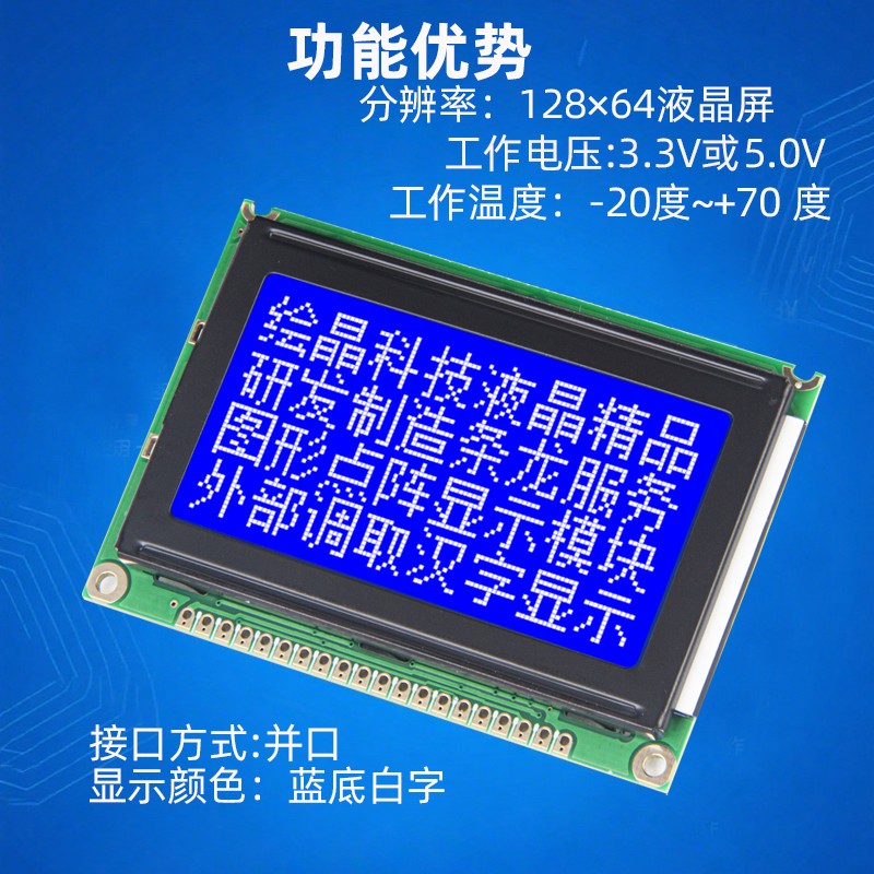 2.4寸藍(lán)白128×64點(diǎn)陣圖形點(diǎn)陣液晶顯示器模塊 2.4寸藍(lán)白128×64點(diǎn)陣圖形點(diǎn)陣液晶顯示器模塊