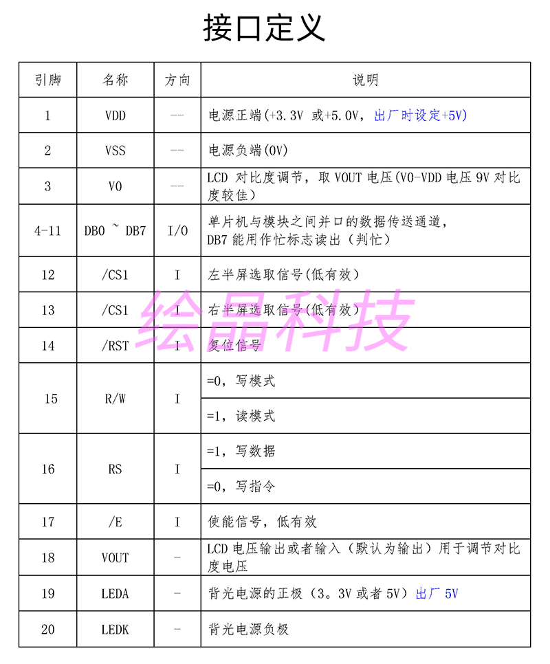 本程序例程中有ASCII碼點(diǎn)陣表5*8,8*16方便調(diào)用低功率省電設(shè)計(jì)(除背光45MA)
