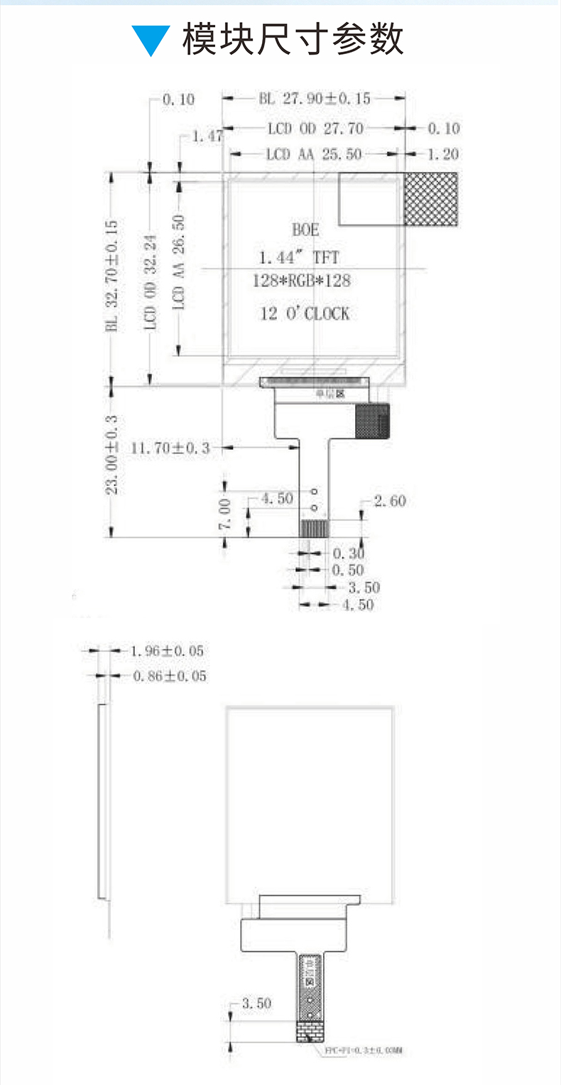 • 1.44寸TFT液晶屏彩屏顯示器模塊128*128TFT14044C8