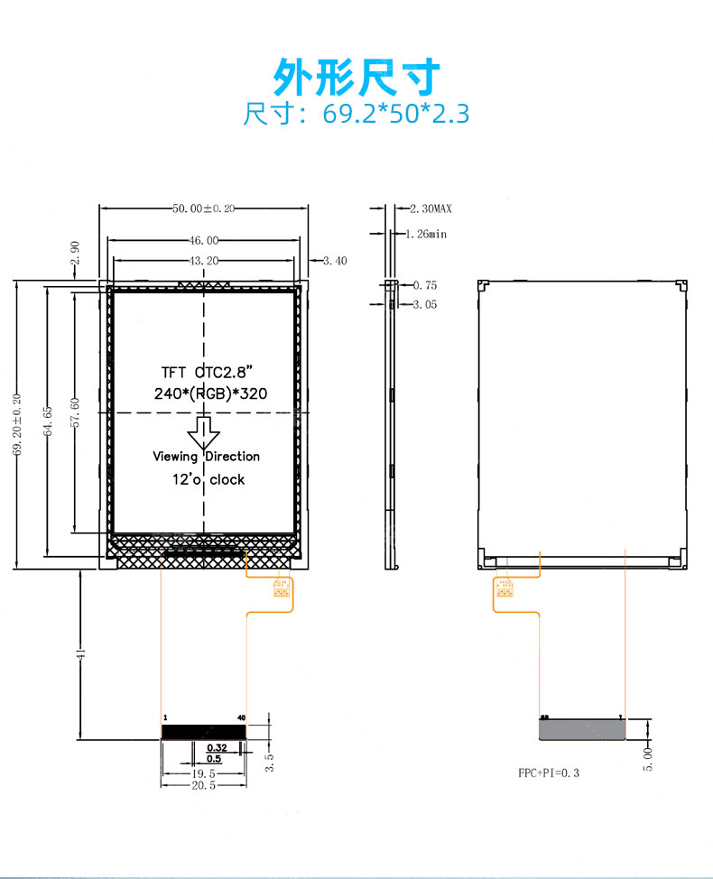 TFT28008C40為2.8寸IPS廣視角 TFT-LCD顯示器模塊。此款TFT-LCD面板240(RGB)X320 DOTS像素,