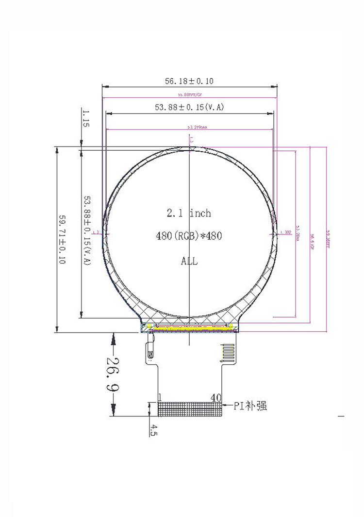 2.1寸圓形TFT彩屏液晶屏LCD屏彩色顯示480*480分辨率