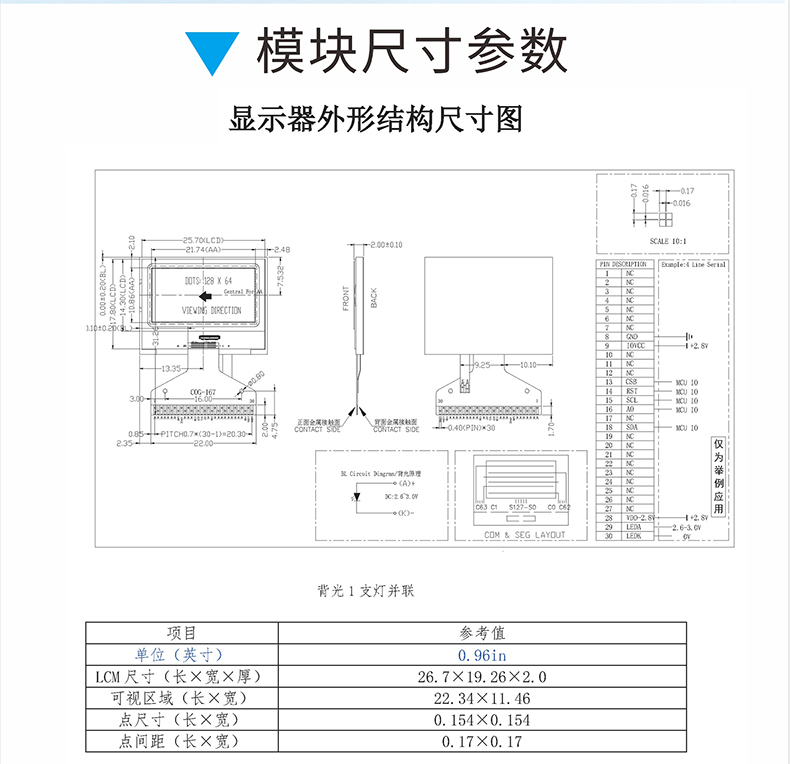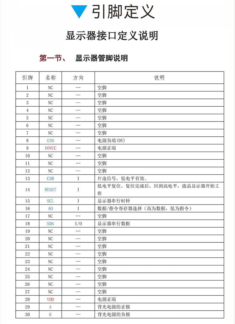 COG:將驅動 IC、FPC 軟板直接壓貼在 LCD 玻璃上的封裝形式叫做 COG,有性價比高、低功耗、體積小、軟件指令豐富的優(yōu)勢工作電壓3.3V,背光電壓 2.8V/15MA通訊方式:4線串行通訊
