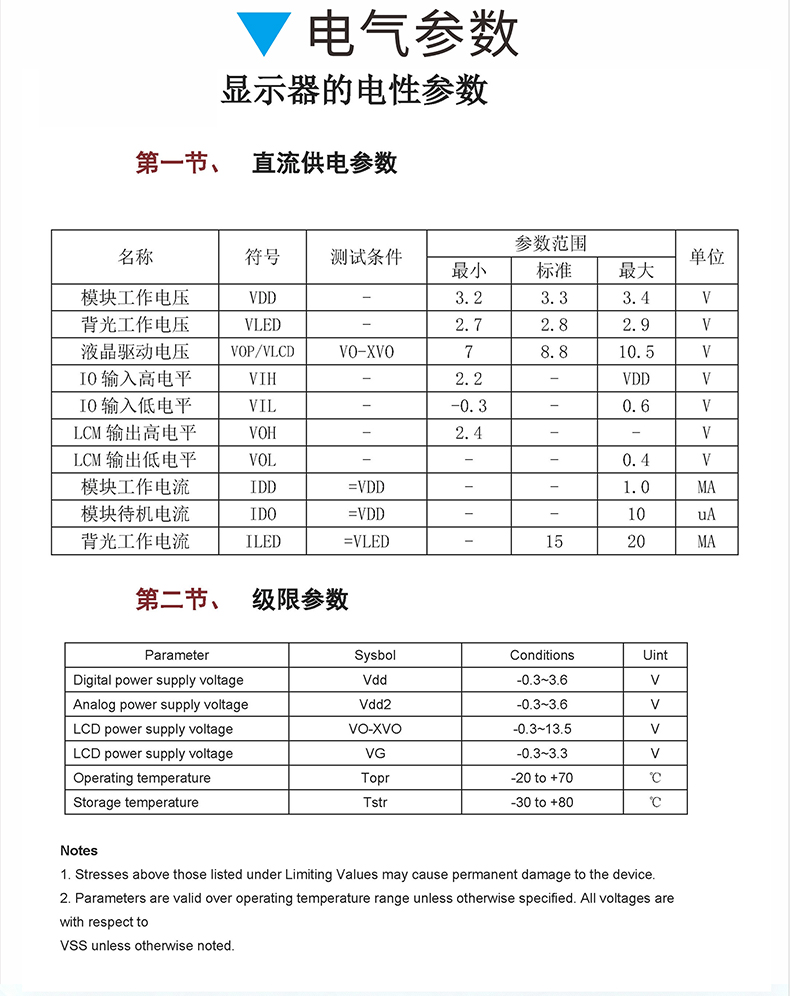 顯示對比度設置軟件復位低功率省電設計(除背光15MA/非絕對值)
