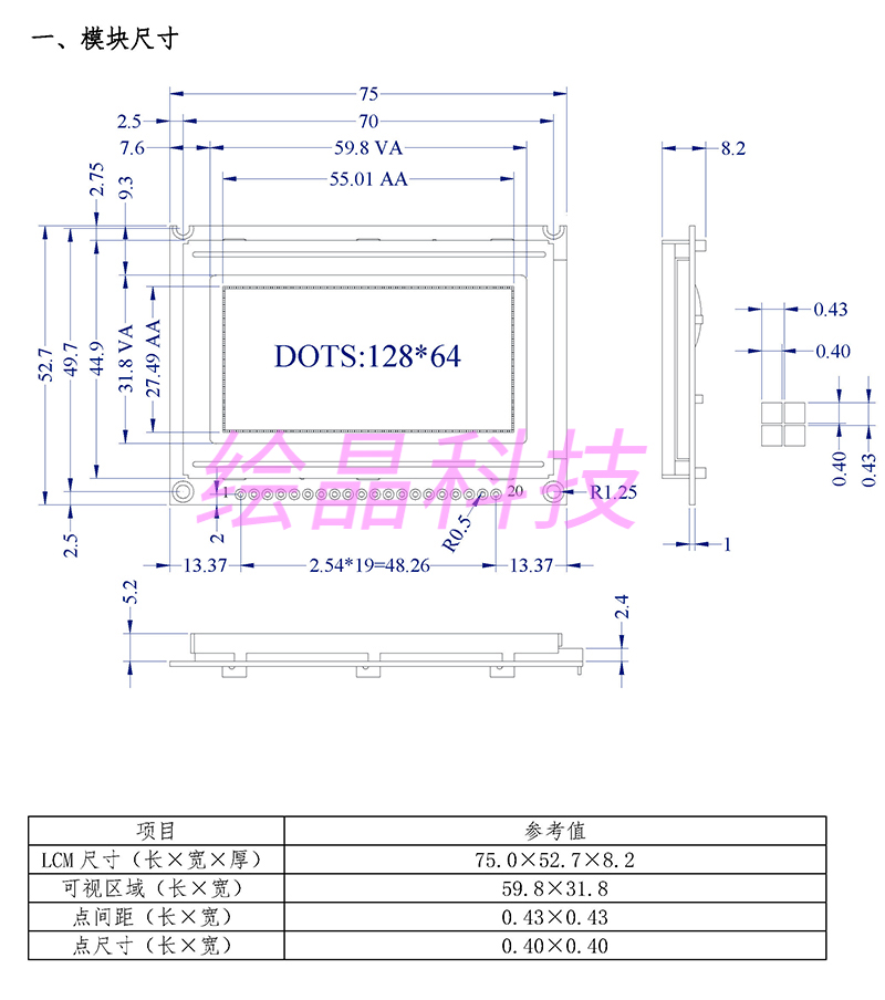 • 2.4寸藍(lán)白128×64點(diǎn)陣圖形點(diǎn)陣液晶顯示器模塊