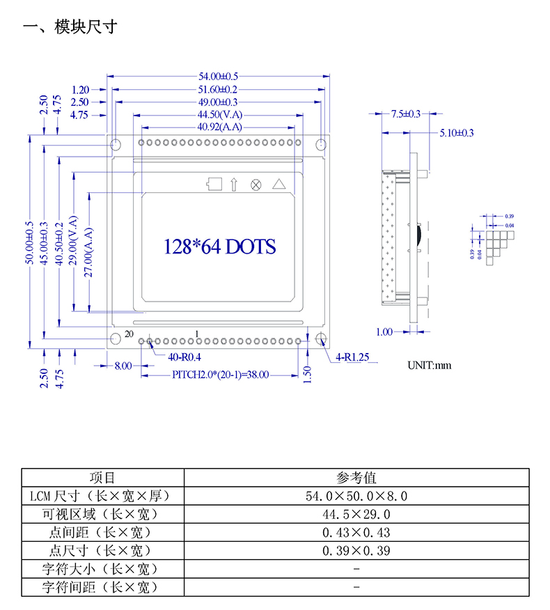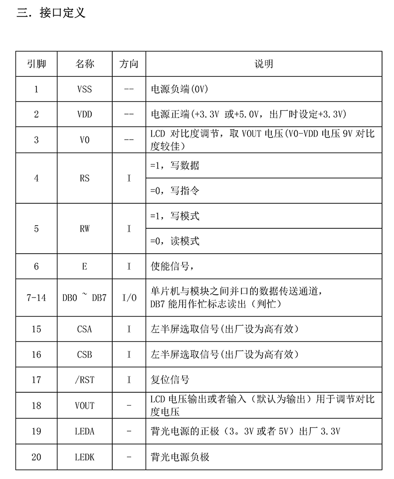 工作電壓 2.7V~5.5V(一般為3.3V或者5.0V供電)通訊方式:8位并行通訊接口,128*64點陣顯示內(nèi)存,縱向取,字節(jié)倒序方式ASCII字符圖案